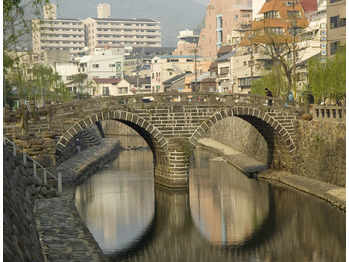 上の長崎市の中島川に架かる眼鏡橋は、1999年頃の眼鏡橋です。